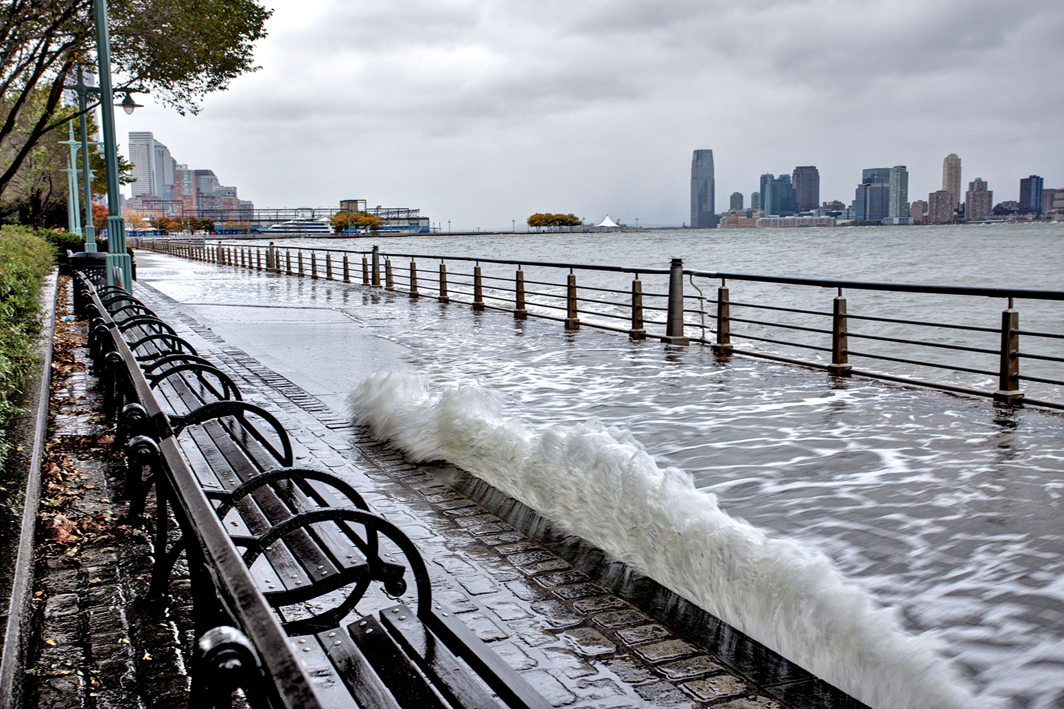 Flooding in Battery Park during Hurricane Sandy. Credit: John G. Wilbanks/Alamy Stock Photo via Carbon Brief.